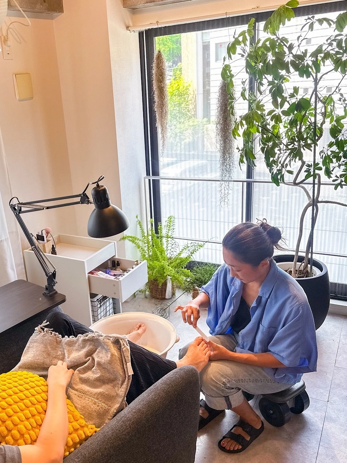 Designed for busy adults, this smart pedicure offers full relaxation in a short time. After a warm aroma soak, nails and cuticles are carefully groomed. A gentle scrub and hot stone massage release fatigue, and gel polish (Shellac, OPI, etc.) gives your toes lasting shine and color. A luxurious foot care experience you can enjoy even in a tight schedule.